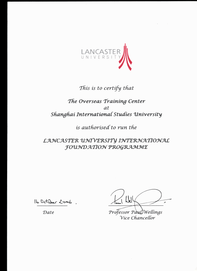 | 学习地点 | 上海外国语大学出国留学人员培训部 | 英国兰卡斯特大学 | |
