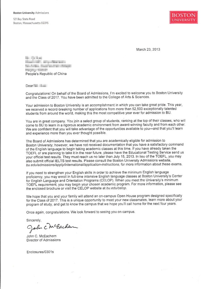 培训部对学生提交的报名材料进行评估,根据其入学测试成绩,对达到录取标准的学生发放录取通知书。