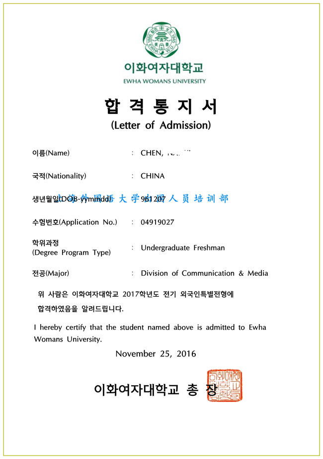 陈同学被梨花女子大学录取