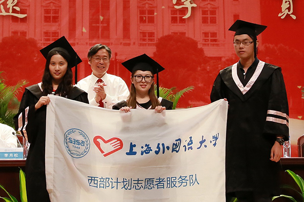 校学生工作部(处)长毕昆鹏宣读了荣获“2014年上海市高校优秀毕业生”称号的学生名单,参加 “大学生西部计划志愿者服务队”的毕业生名单。校党委书记姜锋向“大学生西部计划志愿者服务队”授队旗,全体校领导向荣获“2014年上海市高校优秀毕业生”的同学们颁发了荣誉证书。