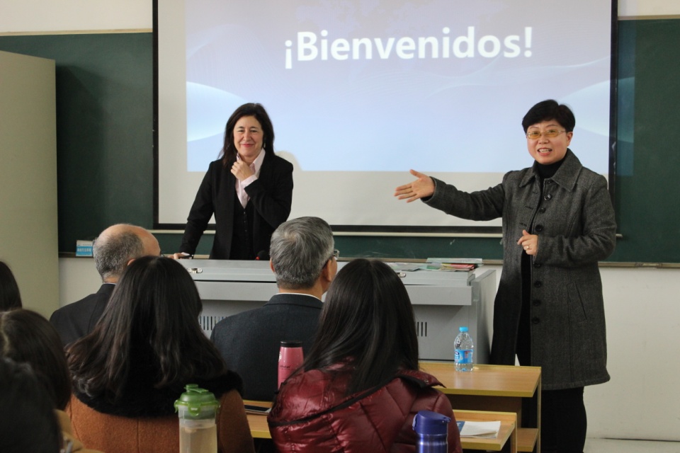 会谈后,马德里自治大学副校长、著名语言学学者AMAYA MENDIKOETXEA女士从语法学家的工作任务入手,用深入浅出的语言,为西方语系研究生及高年级同学做了题为《西班牙语使动表述中的论元结构与能指》的专题讲座。围绕讲座内容,西班牙语专业师生与学者进行了深入而热烈的学术探讨,反响强烈。马德里孔子学院中方院长陈芷,西方语系教师倪茂华、杨明等参加了相关活动。(西方语系)