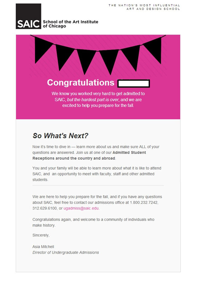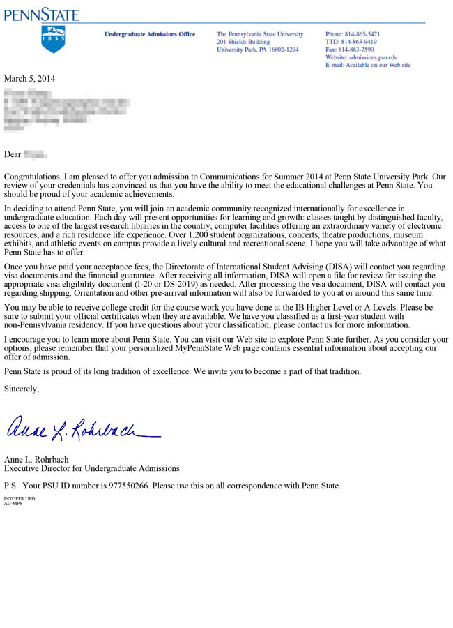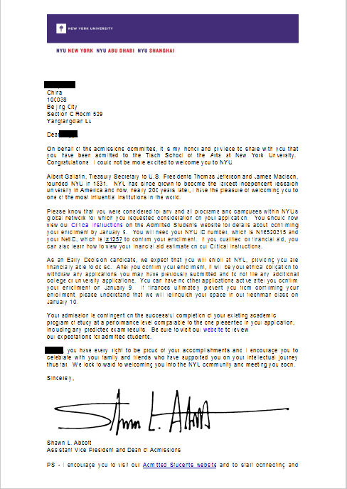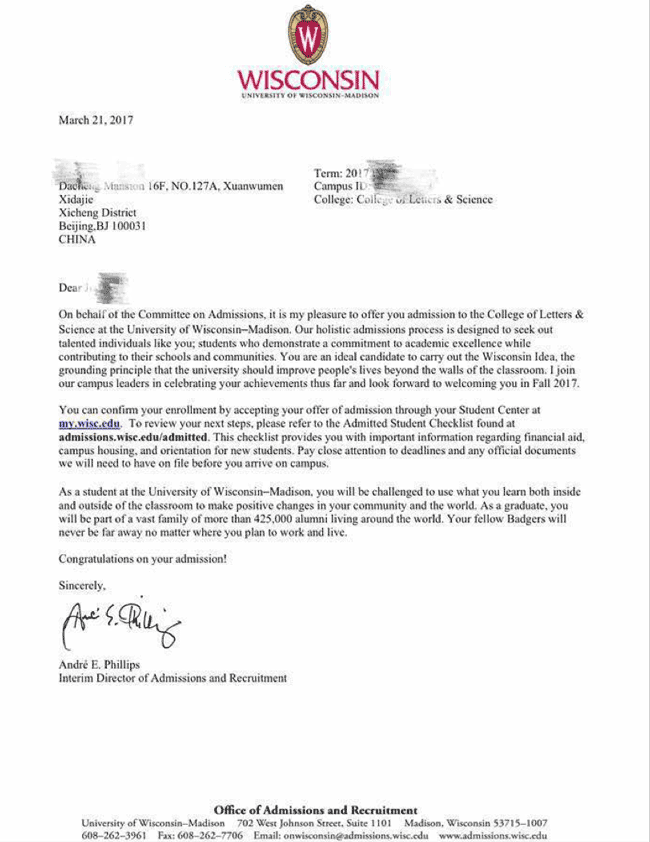 美国2013-2017年部分学生录取通知书展示: