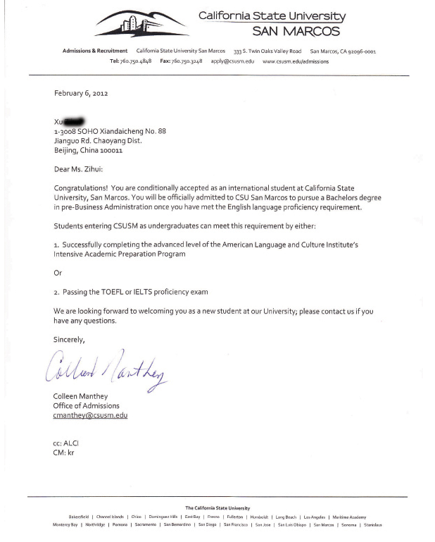 徐子卉加州圣马可思录取offer展示