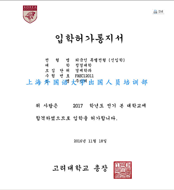 上海外国语大学与韩国大学直接合作,只要通过合作学校考试即可入学,通过率高。